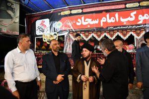 علیرضا گوروئی فرماندار شهرستان اندیمشک، حجتالاسلام والمسلمین موسوی امام جمعه از روند خدمات دهی مواکب شهرستان به زائران اربعین حسینی بازدید کردند