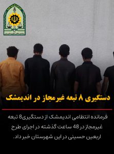 گروه استان ها خوزستان – فرمانده انتظامی اندیمشک از دستگیری ۸ تبعه غیر مجاز در ۴۸ ساعت گذشته در اجرای طرح اربعین حسینی در این شهرستان خبر داد.